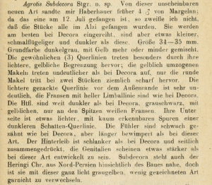 - Agrotis subdecora Staudinger, 1888 [Originalkombination]