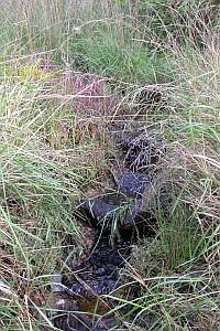 Am 5. September 2010 war ich an einem Entwässerungsgraben einer Lagerstätte mit Salzrückständen. Das salzhaltige Bächlein hat eine Breite von etwa 30 – 40 cm. Am Rand hat sich stellenweise ein nur 10 – 20 cm breiter Streifen mit Salzvegetation gebildet. In diesem Bereich wächst Queller und Kalisalzkraut. Es sind die rötlich aussehenden Pflanzen im Bild unten. Es folgt eine steile Böschung, die dann keine Salzpflanzen mehr aufweist. (Bericht: Uwe Büchner)