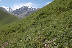 1: Kirgisistan, Oblast Tschüi, Nördlicher Tienschan, Kirgisischer Alatoo, Gebirge um Köl-Tör-Tal, steile alpine Matten auf Blockschutt, 2828 m, 12. Juli 2019 (fot.: Josef Kallmayer)Forum