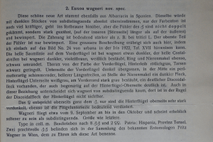 Corti (1926: 3): «Zwei prachtvolle ♂♂ befinden sich in der Sammlung des bekannten Entomologen Fritz Wagner in Wien, dem zu Ehren ich diese Art benenne.»