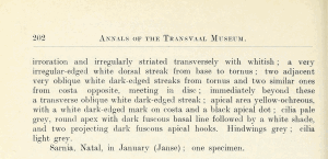 - Erstbeschreibung: Meyrick, E. (1914): Descriptions of South African Micro-Lepidoptera. — Annals of the Transvaal Museum 4 (4): 187-205. [Digitalisat auf biodiversitylibrary.org]