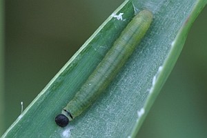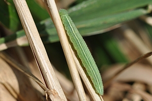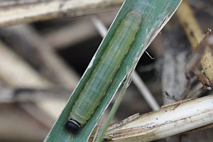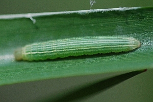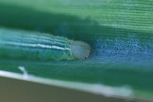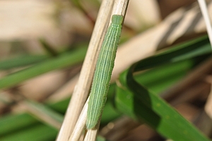 Hartmut Kretschmar und Erwin Rennwald gelangen Anfang September 2011 bei Berlin Funde noch jüngerer Raupen an Sumpf-Reitgras (Calamagrostis canescens, mehrfach), Landschilf (Phalaris arundinacea) und auch Blauem Pfeifengras (Molinia caerulea).
