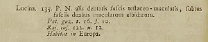 Honey & Scoble (2001: 344): “LSL [The Linnean Society of London, Anm. Red. Lepiforum]: 1 ♂ labelled “135 Lucina” [by Linnaeus], “Lucina 784.” [by Smith], here designated as LECTOTYPE; [...].”