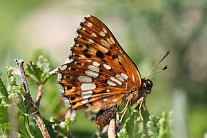 Die orangefarbenen Flecken auf der Oberseite sind bei den ♀ ♀ in der Regel größer als bei den ♂ ♂. Dem gegenüber sind die schwarzen Kernflecken der Randbinde bei den ♂ ♂ größer als bei den ♀ ♀. Dadurch wirken die ♀ ♀ insgesamt heller.