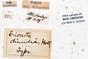 1-3: Holotypus ♀, Daten siehe Etiketten (fot.: Nick V. Grishin, Fotos bearbeitet: Michel Kettner), coll. Zoologisches Museum der Humboldt-Universität zu Berlin.