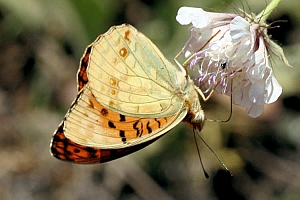 | A. pandora | ![]() | ![]() | ![]() | Oberseite 1 - bei ♂ 2 Duftschuppenstreifen auf Cu1 und Cu2 2 - relativ kleine Postdiskalflecken 3 - bei ♀ Diskalflecken meist verbunden 4 - grünlicher Schimmer Unterseite 5 - Vorderflügel orangerot, kardinalrot 6 - Silberstreifen oft nur schwach ausgeprägt, manchmal unterbrochen |