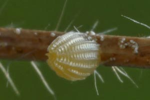 Das Weibchen legt seine Eier nicht an die Nahrungspflanze, verschiedene Veilchenarten wie das Hunds-Veilchen (Viola canina), das Rauhhaarige Veilchen (Viola hirta), das Hain-Veilchen (Viola riviniana) oder das Wohlriechende Veilchen (Viola odorata), sondern an dürre Grashalme und sonstiges trockenes pflanzliches Material in der Nähe der Veilchen. Denn bei dieser Art überwintert die Raupe fertig ausgebildet im Ei und schlüpft erst im nächsten Frühjahr. An den verwelkenden Veilchenblättern aber bestünde die Gefahr, dass das Ei im Winter verfaulen würde.