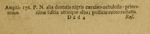 - Erstbeschreibung: Linnaeus, C. (1767): Systema Naturae, Tom. I. Pars. II. Editio duodecima reformata. 533-1327 + unpaginierter Anhang. Holmiae (Salvius).