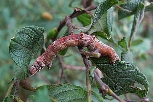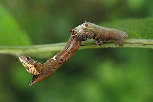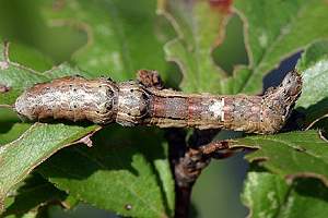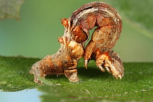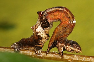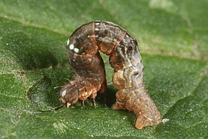 14-15: Deutschland, Bayern, Bayerischer Wald, Furth im Wald, eigener Garten, Raupe gefunden an Alpen-Johannisbeere (Ribes alpinum), 22. & 28. August 2012 (det. & fot.: Ingrid Altmann), conf. Joachim RutschkeForum