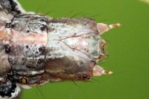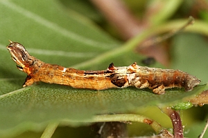 5: vorletztes Stadium, Deutschland, Sachsen, Dübener Heide, Umgebung von Doberschütz, an Hainbuche (Carpinus betulus), 5. September 2007 (manipuliertes Freilandfoto: Heidrun Melzer), leg., cult. & det. Heidrun Melzer