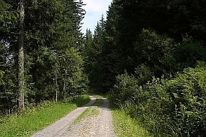 1: Waldweg in Fichtenhochwald in mooriger Umgebung, Deutschland, Baden-Württemberg, Südschwarzwald, Todtnau, NSG Hinterwaldweide, 1190 m, 23. August 2012 (Foto: Florian Nantscheff)Forum