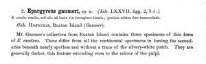 - Erstbeschreibung: Godman, F. D. & O. Salvin (1887-1901): Biologia Centrali-Americana. Insecta. Lepidoptera-Rhopalocera. Vol. II. (Text.): 1-782. — Digitalisat auf biodiversitylibrary.org: [300]