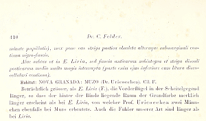 - Erstbeschreibung: Felder & Felder (1864-1867): Reise der österreichischen Fregatte Novara um die Erde in den Jahren 1857, 1858, 1859 unter den Befehlen des Commodore B. von Wüllerstorf-Urbair. Zoologischer Theil. Zweiter Band. Zweite Abtheilung: Lepidoptera. I-VI, 1-549. Wien (Kaiserlich-königliche Hof- und Staatsdruckerei).