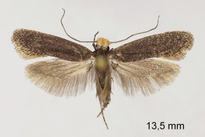 4-5: ♂, Spanien, Aragonien, Saragossa, Bergland bei Pina de Ebro, 500 m, 41.612846, -0.315540, 7. Juli 2021, am Licht (leg., gen. det. & fot.: Friedmar Graf), Referenz: Reinhard Gaedike. Microlepidoptera of Europe 9, Tineide 2, ♂ Gen. Fig. 208Forum