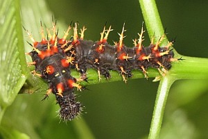 1-2: erwachsene Raupe, Frankreich, La Réunion, Salazie, Piton d'Anchaing, an Urticaceae, 12. März 2010 (det. & Freilandfotos: Georg Paulus)Forum