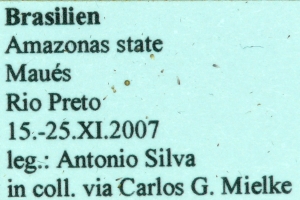 1: ♂, Brasilien, Rondonia, Rancho Grande, 27. November 2006 (fot.: Kim Garwood, det. Bernard Hermier)