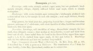 - Erstbeschreibung: Warren, W. (1897): New Genera and Species of Drepanulidae, Thyrididae, Epiplemidae, Uraniidae, and Geometridae in the Tring Museum. — Novitates Zoologicae 4 (2): 195-262, pl. V.