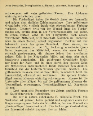- Erstbeschreibung: Rebel, H. (1902-1903): Neue Pyraliden, Pterophoriden und Tineen des palaearctischen Faunengebietes. — Deutsche entomologische Zeitschrift Iris 15 (1): 100-126, (2) pl. IV.