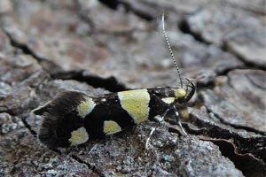 Deutschland: Der älteste Fund in Deutschland stammt aus Hamburg. Roweck & Savenkov (2007: 474-475) fanden bei einer Durchsicht der Sammlung von Evers im Hamburger Zoologischen Museum zwei ♀♀, die als „Incurvaria rupella“ (Lampronia rupella) fehlbestimmt waren. Das eine Tier, gefunden in der Stadt Hamburg, ist auf den 20. Juni 1954 datiert, das andere aus dem Stadtteil Hamburg-Hausbruch auf den Zeitraum 27. Juni bis 10. Juli 1954. Den ersten Falter in Nordrhein-Westfalen fand Weissenborn nach Biesenbaum (1989) am 9. Juni 1983 in Rhede-Krommert bei Borken. Biesenbaum (2007) listet eine große Zahl weiterer Fundorte in Nordrhein-Westfalen auf, die sich vor allem linksseitig des Niederrheins nahe der Grenze zu den Niederlanden konzentrieren und im Osten bis nach Bielefeld und an die Grenze zu Nordhessen reichen. Krüger (2001) publizierte den Erstfund für Niedersachsen, Petschenka (2003) für Baden-Württemberg, Werno (2002ff) für das Saarland mit einem Nachweis aus dem Jahr 2003. Mit den Falterbildern 1, 6 und 7 (siehe oben) sind drei Funde vom 10. Mai 2005 (M. Hund), 18. Mai 2006 (G. Reder) und 21. Mai 2008 (H. Stern) aus Rheinland-Pfalz dokumentiert, mit Falterbild 3 ein Fund vom 17. Mai 2007 (R. Ridley) aus Hamburg. B. Piepgras meldete im [Lepiforum] den Nachweis im südwestlichen Schleswig-Holstein vom Mai 2007. G. Derra in Arbeitsgemeinschaft Microlepidoptera in Bayern (2010) meldet für den 10. Juni 2009 den Erstnachweis für Bayern (Reckendorf, Umg. Bamberg/ Ofr.). In Hessen gelang H. Nier ein Fund am 26. Mai 2012, siehe Falterbild 9 [Forum]. Der erste Nachweis in den neuen Bundesländern gelang F. Theimer (2013: 83) am 12. Juni 2011 in Brandenburg.