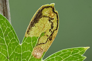 Die Raupe miniert vor allem in Blättern von Weißdorn-Arten, darunter auch wahrscheinlich allen gepflanzten fremdländischen Arten und Hybriden.