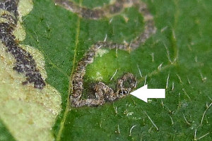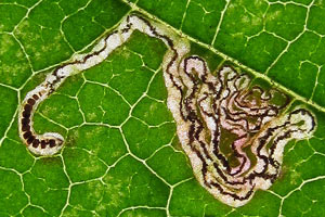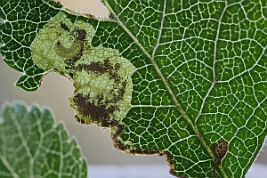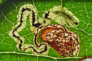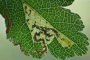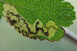 Schon in der Erstbeschreibung der Art werden Weißdorn und Apfel als Nahrungspflanzen der Raupe der in Europa weit verbreiteten Art genannt. Eingriffliger und Zweigriffliger Weißdorn scheinen dabei zumindest in Nordwesteuropa die wichtigsten Nahrungspflanzen zu sein, dazu kommen diverse weitere Rosaceen und auch die in eine eigene Familie gehörende Pimpernuss (Staphylea pinnata). Bladmineerders.nl [Artseite auf bladmineerders.nl] nennt insgesamt: Crataegus monogyna (Eingriffliger Weißdorn), Crataegus laevigata (Zweigriffliger Weißdorn), Malus domestica (Kultur-Apfel), Malus sylvestris (Wild-Apfel), Pyrus communis (Kultur-Birne), Prunus avium (Vogel-Kirsche, Süß-Kirsche), Prunus cerasifera (Kirschpflaume), Prunus insititia (Pflaume), Prunus mahaleb (Felsenkirsche, Stein-Weichsel), Mespilus germanica (Echte Mispel), Sorbus aucuparia (Eberesche) und Staphylea pinnata (Pimpernuss).