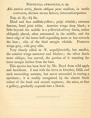 - Nepticula atricolella Doubleday, 1859