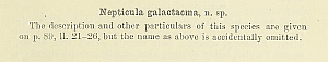 - Nepticula galactacma Meyrick, 1924 [Originalkombination]