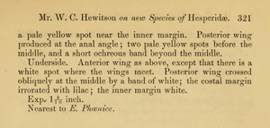 - Erstbeschreibung: Hewitson, W. C. (1877): Descriptions of twenty-three new Species of Hesperidae from his own Collection. — The Annals and Magazine of Natural History, Zoology, Botany, and Geology. Fourth Series 20: 319-328. London (Taylor and Francis). — Digitalisat auf biodiversitylibrary.org: [320]