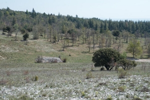 2: Raupenfunde an Weißdorn beim Steinhaufen in der Bildmitte, zusammen mit Eriogaster catax: Frankreich, Vaucluse, Mt. Ventoux, südlich Le Ventouret, 950 m, 19. April 2011 (fot.: Martin Albrecht)Forum
