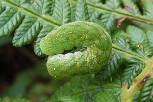 1: hoher Mischwald, Raupe an Wurmfarn (Dryopteris spec.): Deutschland, Baden-Württemberg, Lörrach, 400 m, 3. September 2006 (Foto: Florian Nantscheff)Forum