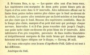 • Erstbeschreibung: Mabille, P. (1889): Descriptions de quelques espèces nouvelles d'Hespérides du genre Butleria. — Bulletin des séances et bulletin bibliographique de la Société entomologique de France 5: XCI-XCIII. — Digitalisat auf biodiversitylibrary.org: [XCII]