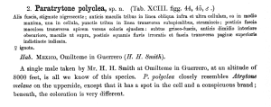 - Erstbeschreibung, Text: Godman, F. D. & O. Salvin (1887-1901): Biologia Centrali-Americana. Insecta. Lepidoptera-Rhopalocera. Vol. II.: 1-782. [London] (Taylor and Francis). — Digitalisat auf biodiversitylibrary.org: [488]