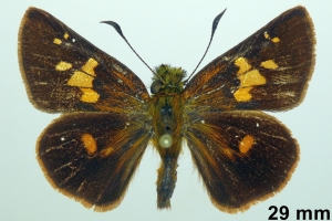 1-3: Holotypus ♂, Daten siehe Etiketten (fot.: Bernard Hermier, Fotos bearbeitet: Michel Kettner), coll. McGuire Center for Lepidoptera and Biodiversity, University of Florida, Gainesville, Florida.