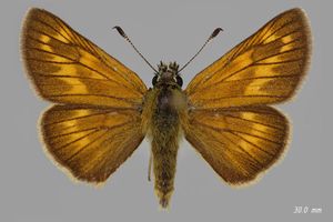 Ochlodes sylvanus ♀ : Schweiz, Kanton Glarus, Engi, 1100 m, 2. Juli 2009 (det. & fot.: Thomas Kissling) [Forum]