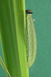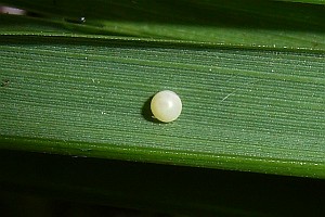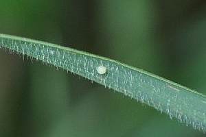 Rennwald in Ebert & Rennwald (1991: 441-442) berichtet über Freiland-Eiablage-Beobachtungen (fast stets auf die Oberseite grüner Blätter) in Baden-Württemberg an Brachypodium pinnatum, Dactylis glomerata, Calamagrostis epigejos und Phleum pratense, dazu Raupenfunde an Brachypodium pinnatum, Calamagrostis epigejos, Molinia caerulea und Agrostis capillaris. Eller & Rennwald (2007: 789) berichten über eine Eiablagebeobachtung von S. Caspari im Oberen Nahetal an Phleum phleoides. Ferner trugen sie zusammen: "Schmitt (1999) meldet Eiablagebeobachtungen im südwestlichen Hunsrück an Rohr-Glanzgras (Phalaris arundinacea) und Pfeifengras (Molinia caerulea agg.), Ulrich (2000) aus dem Saarland an Rotem Straußgras (Agrostis capillaris) und Steppen-Lieschgras)." Kolbeck (2013: 117) führt aus Bayern Eiablagebeobachtungen und Raupenfunde an Brachypodium pinnatum, Brachypodium sylvaticum, Alopecurus pratensis, Phalaris arundinacea und Elymus repens an.