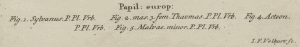 - Papilio sylvanus Esper, [1777]: Die Art wurde aus Franken beschrieben. Sicherlich der älteste Name für "unser" Tier. Die Beschreibung ist formal gültig, und sie ist eindeutig, da gibt es nichts daran zu rütteln. Einziger Grund für eine Ablehnung wäre, dass der Name schon für eine andere Art besetzt wäre, dass hier also ein jüngeres primäres Homonym vorläge. Genau dies scheint der Fall zu sein. Denn Papilio sylvanus Drury, 1773 meint einen Bläuling - das hat nur mehr als 200 Jahre lang niemand bemerkt ...