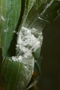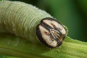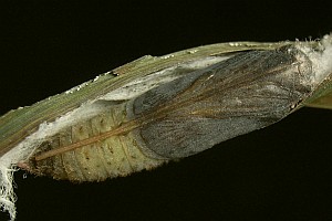 Die Raupen spinnen vor der Verpuppung tatsächlich ein paar Grasblätter sehr fest zusammen, was sonst keine der einheimischen Hesperiiden-Raupen macht. Thymelicus z.B. spinnen sich einfach mit wenigen Fäden frei am Blatt an. Zusammengesponnen werden bei Ochlodes grüne Grasblätter, die Fäden sind schneeweiß wie bei Spinnenkokons.