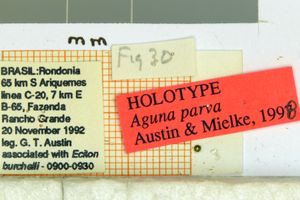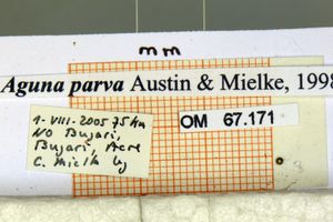 - Erstbeschreibung: Austin, G. T. & O. H. H. Mielke (1998): Hesperiidae of Rondônia, Brazil: Aguna Williams (Pyrginae), with a partial revision and descriptions of new species from Panama, Ecuador, and Brazil. — Revista brasileira de Zoologia 14 (4): 889-965. [PDF auf scielo.br]