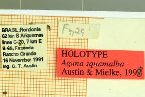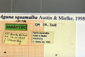 - Erstbeschreibung: Austin, G. T. & O. H. H. Mielke (1998): Hesperiidae of Rondônia, Brazil: Aguna Williams (Pyrginae), with a partial revision and descriptions of new species from Panama, Ecuador, and Brazil. — Revista brasileira de Zoologia 14 (4): 889-965. [PDF auf scielo.br]