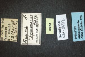 1-3: Holotypus ♂, Daten siehe Etiketten (fot.: Ernst Brockmann, Fotos bearbeitet: Michel Kettner), coll. Departamento de Zoologia, Universidade Federal do Paraná, Curitiba, Paraná, Brazil.