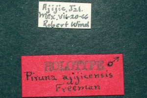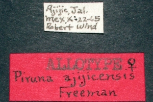 1-3: Holotypus ♂ von Piruna ajijiciensis Freeman, 1970: Daten siehe Etiketten (fot.: Bernard Hermier, Fotos bearbeitet: Michel Kettner), coll. American Museum of Natural History. New York City.