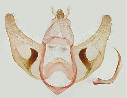 1: Präparat des unter Diagnosefoto 2 gezeigten ♂, Tadschikistan, 10. Oktober 1955 (leg.: Shetkin [Original-Etikettierung: Ю. Щеткчн], coll. MFN Berlin, Präparation, det. & Mikrofoto: Peter Buchner)