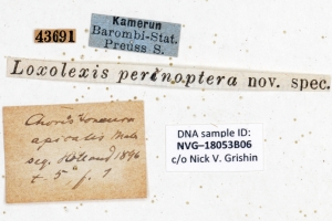 4-6: Holotypus ♂ von Loxolexis percnoptera Karsch, 1895, Daten siehe Etiketten (fot.: Nick V. Grishin, Fotos bearbeitet: Michel Kettner), coll. Zoologisches Museum der Humboldt-Universität zu Berlin.