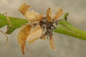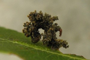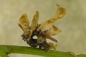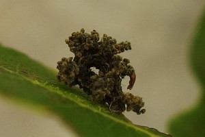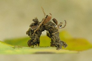 Fritsch et al. (2014) berichten über einen Raupenfund auf der griechischen Insel Samos an einer völlig anderen Pflanze, nämlich Pulicaria dysenterica. Die Weiterzucht zum Falter gelang u. a. mit Sanguisorba minor. Die Dekoration der Raupe am Fundtag ließ darauf schließen, dass sie nie an Quercus gefressen hatte.
