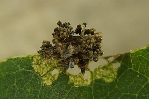 Bei der oben dokumentierten Zucht wurden Blätter der beiden immergrünen Eichenarten Zyperns (Quercus coccifera und Quercus alnifolia) von den Eiraupen komplett ignoriert. Stattdessen knabberten sie wochenlang eher lustlos an den mehr gelben als grünen Blättern der heimischen Eichenarten Quercus petraea und Quercus robur, bis sie Ende November schließlich das Fressen einstellten und in Diapause gingen. (Egbert Friedrich)