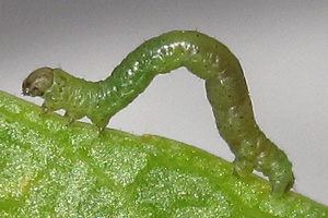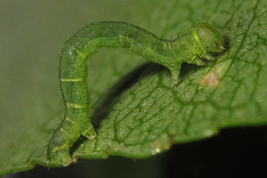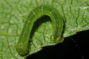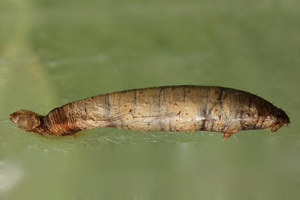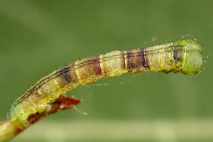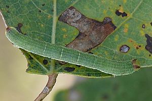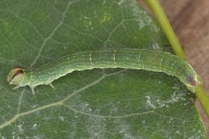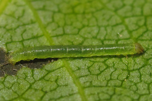 1: frühes Stadium (5 mm), Deutschland, Niedersachsen, Region Hannover, zwischen Sehnde und Köthenwald, altes Kippengelände, 65 m, Raupe an Pappel (Populus spec.), 11. Juni 2017 (det. & Studiofoto: Tina Schulz)