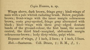 - Erstbeschreibung: Butler, A. G. (1870): Descriptions of some new Diurnal Lepidoptera, chiefly Hesperiidae. — The Transactions of the Entomological Society of London for the Year 1870 (4): 485-520. [Digitalisat auf biodiversitylibrary.org]