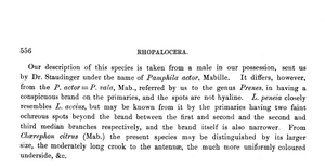 - Erstbeschreibung: Godman, F. D. & O. Salvin (1887-1901): Biologia Centrali-Americana. Insecta. Lepidoptera-Rhopalocera. Vol. II. (Text.): 1-782. — Digitalisat auf biodiversitylibrary.org: [555]