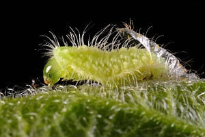 Und weiter: "But why are young plants or young suckers preferred? Young plants are comparatively small and they do not flower. Older plants are tall growing, but they usually have also twigs near the ground and they are producing flowers. Microclimatic features could not explain the preference for young plants or suckers because the old P. spinosa bushes also provide many potential egg-laying places with leaf buds in the favoured layer near ground. Young plants could invest all their energy into leaf growth and development, whereas older plants need energy for flower production. Therefore, the total amount of leaves and the content of water and nutrients in the leaves can be different between these two groups."