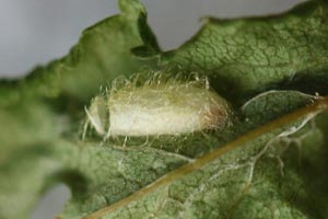 Die Eier lassen sich an Prunus-Arten finden. S. pruni-Eier sind gewöhnlich dunkler, während jene von von T. betulae rein weiß sind. Vor dem Schlüpfen der Jungraupen dunkeln jedoch beide nach. Ein weiteres Unterscheidungsmerkmal ist die Microphyle. Bei S. pruni bildet diese eine Art Krater, während sie bei T. betulae nur als kleines Loch in einem sonst rundlichen Ei wahrzunehmen ist.
